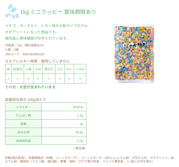 業務用ラムネは1kg単位など大容量で販売されるため、